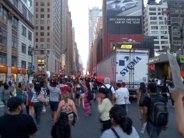 NOW: Trayvon Martin rally now moving north on 8th Ave in NYC - @brigidbergin pic.twitter.com/6BDebzEEWo