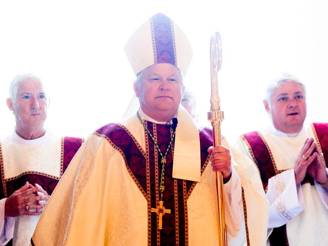 Knoxville Bishop Richard F. Stika enters through the front doors at the Mass and Rite of Dedication of the Cathedral of the Most Sacred Heart of Jesus in Knoxville, Tennessee on Friday, January 1, 2016. After nearly three years of construction, the 28,000-square-foot domed cathedral opened to a noon mass attended by more than 1,000 people.