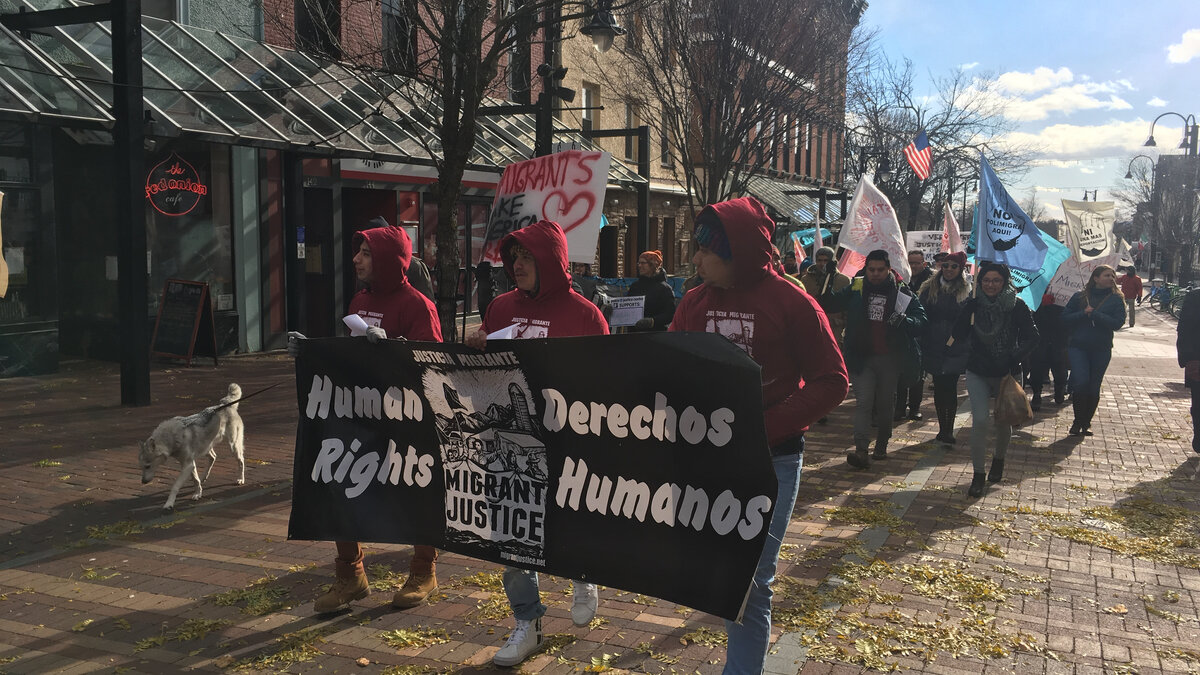 Farmworkers marched to the federal courthouse in November in Burlington, Vt. to file a lawsuit that alleges their leaders were targeted by ICE, with the help of the state DMV.