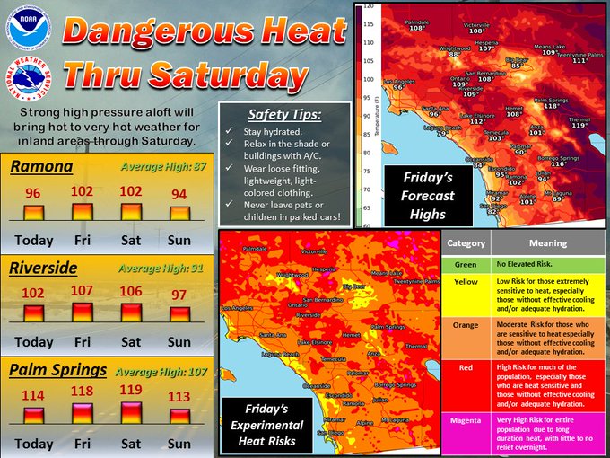 Expected heat impacts Friday across SW #CAWX. #LAHeat#caheat