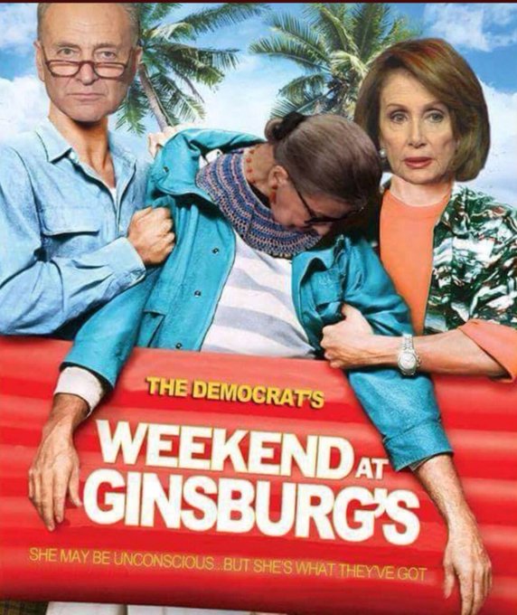 Am I the only one who thinks Ruth Bader Ginsburg is actually dead but the media won’t report it bc they don’t want Trump nominating anyone else? #WeekendAtRuths