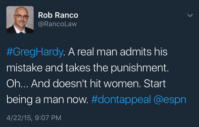 So this is civil rights lawyer Rob Ranco and his thoughts on abusing women. Sick man. @RancoLaw