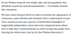 New York Times reveals how ‘consensus’ is deceptively created by medical & climate science: Suppressing COVID lab leak theory required ‘circling the wagons & vilifying anyone who dared to dissent’