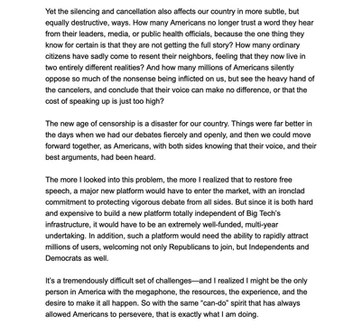 “People cannot wait for TRUTH Social the 10’s of millions of Americans who have been deplatformed and censored and shadow banned, have been waiting for President Trump to announce this real true alternative and its going to EXPOSE EVEN MORE.