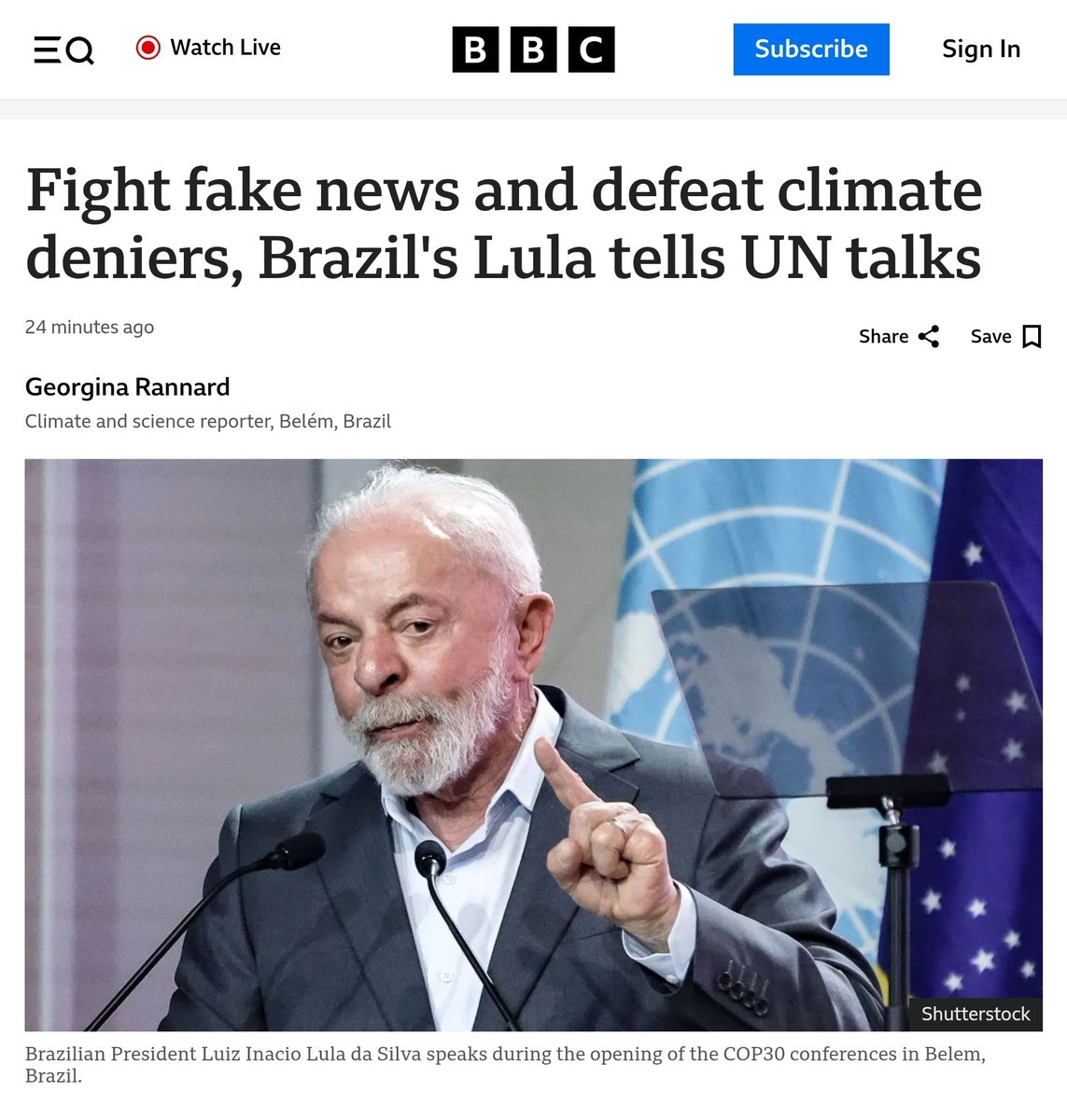 Fight fake news and defeat climate deniers, Brazil's Lula tells UN talks The world must "defeat" climate denialism and fight fake news, Brazil's President Luiz Inácio Lula da Silva has told the opening meeting of the UN climate talks. In a rallying cry to COP30, President Lula https://t.co/ZfvVak6Nlh