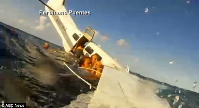 Puentes and the rest of his passengers jumped out of the sinking plane.