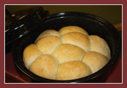 We greased one of the included pans with our Clarified Butter, and then put the rolls in. It is recommended that you cook everything in black or dark colored pots, as they help absorb the heat better. Even when baking bread, you need to have the lid on the pot so it will trap the heat and moisture.