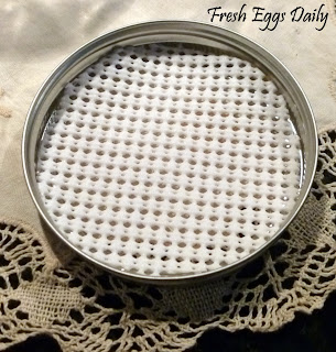 Cut the shelf liner to fit inside the ring part of the jar. This allows air to circulate inside the jar. You can buy pre-made sprouting lids, but this way is easy and inexpensive and works just as well.