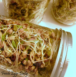 If YOU have also been wondering what you can give to your chickens for healthy treats this winter when they can't get out to forage, and when produce isn't plentiful, why not sprout some seeds or beans for them? It's inexpensive and give the chickens much-needed nutrition when they can't be out eating grass and weeds.
