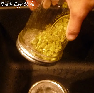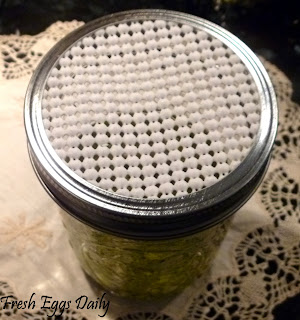 I am planning on keeping five jars going all the time this winter, starting a new one each morning so one jar is ready to eat each day, for a constant healthy treat source for our flock.