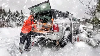 Stuck Alone in Snow Storm Overnight | Building Log Cabin