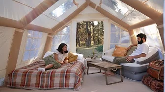 (10822) CAMPING WITH FIRE STOVE IN INFLATABLE TENT IN SNOWSTORM - YouTube