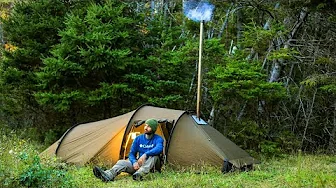 TENT CAMP WITH STOVE IN AN ABANDONED VILLAGE