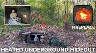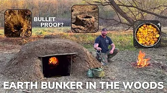 Solo Overnight Building a Secret Underground Hideout with a Fireplace in the Woods and Turkey Chili