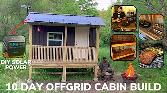 Solo 10 Day Overnight Building an Off-Grid Cabin with Solar Power in The Woods and Tomahawk Ribeye