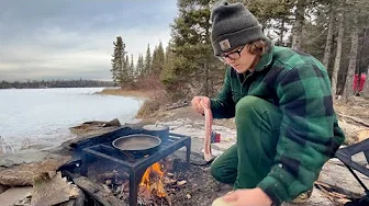Solo Overnight in 10 sq. ft. MICRO HOUSEBOAT (bad idea!) - Wood Stove, Ice Breaking, Cooking