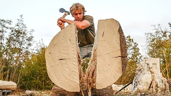 How to Split a Log in Half Only With Axe Without Sawmill - The Primitive Way