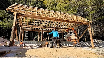 I Peeled 67 Logs for My Off Grid LOG CABIN I EP 3
