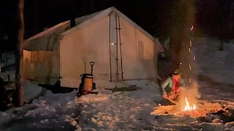 Magical winter wall tent camping- with a WOOF and a MOOSE!