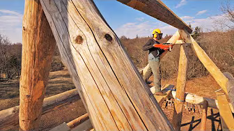 Building Off Grid Log Cabin S 2 Ep 9 / Roof Rafters