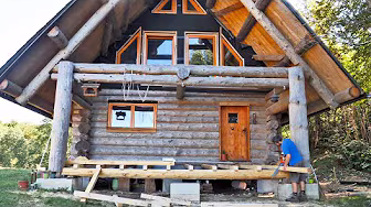 Building Off Grid Log Cabin - S 2 Ep 3 / Balcony Support Logs
