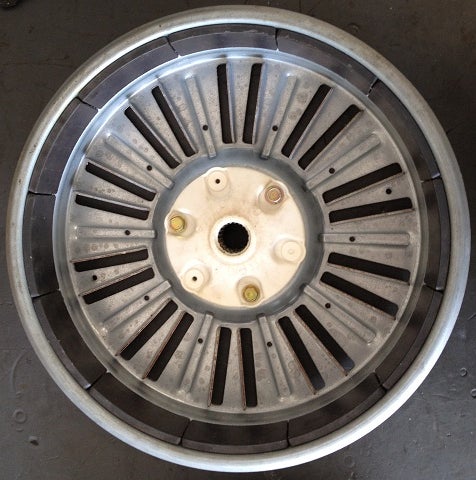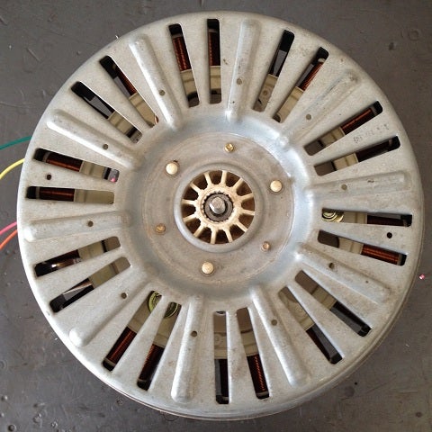 This step was the most destructive using various implements to separate the motor assembly from the washing machine. I'll leave it to your imagination and whatever tools you have on hand. The output of this step should be the coil assembly and the magnet assembly. Keep the shaft and bearings if you can also. Mine were pressed into the washing drum and were difficult to remove without destroying them. Keep the bolts from the coil and magnet assembly also. You may want to use them for your new hub.