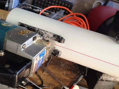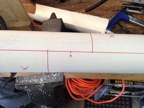 First mark the cutting lines on the PVC pipe. You can sand off the marks after cutting and/or paint the blades if needed.