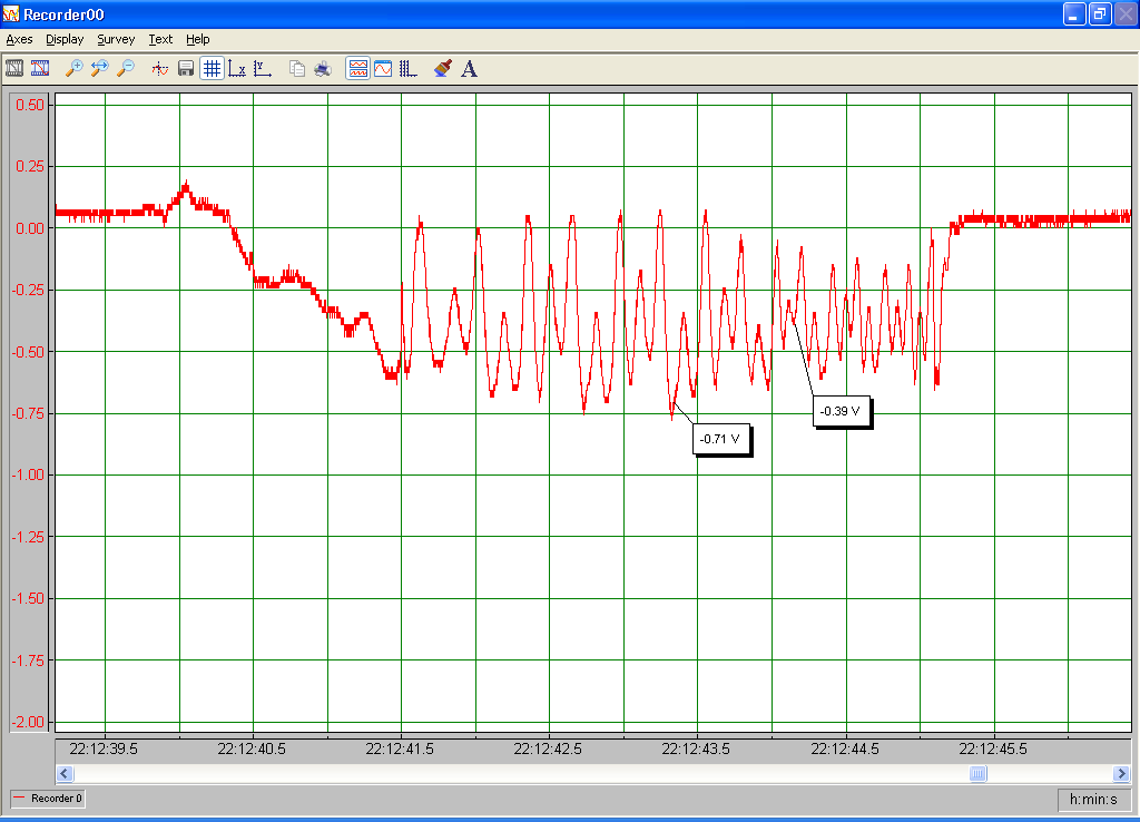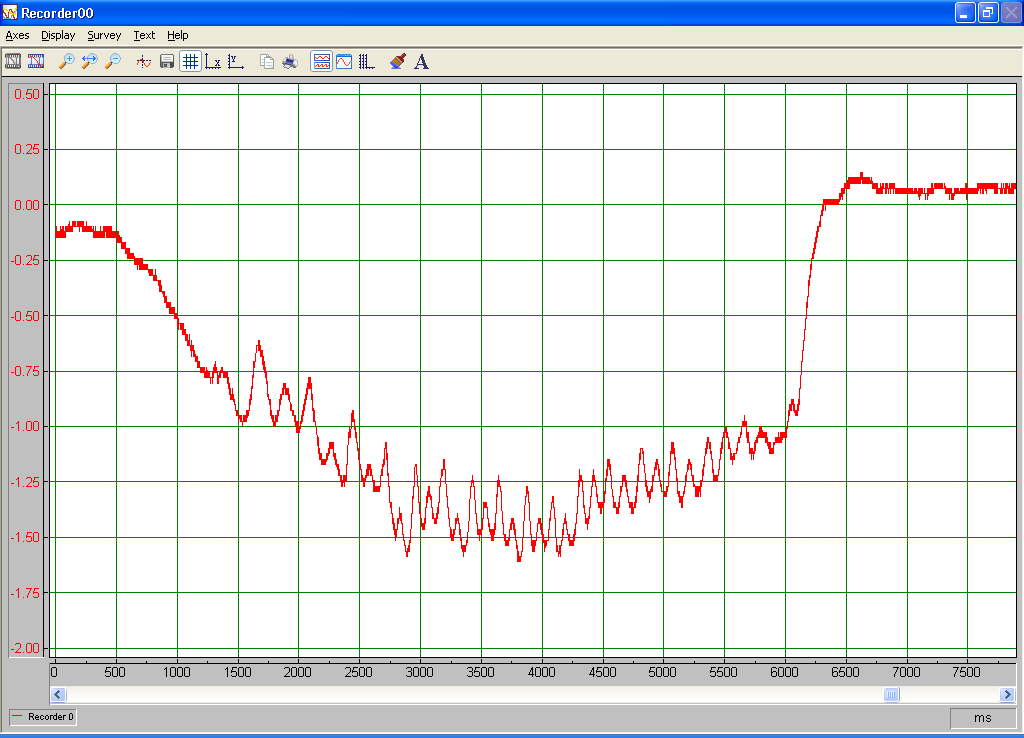 No load and full load torque was measured using a strain gage load cell mounted on a rod located one foot from the center of the hub. Data was captured using a national instruments DAQ card and DasyLab daq software. No load was all wires open, full load was all wires shorted. I tried to move the rod 90 degrees in 5 seconds at a steady rate manually.