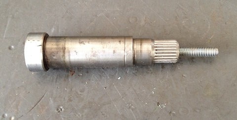 I saved part of the original washing machine drum shaft where the two bearings were located and cut off the rest. Then I added some threaded rod in the end where the original bolt was located. The threaded rod will attach to my blade assembly.