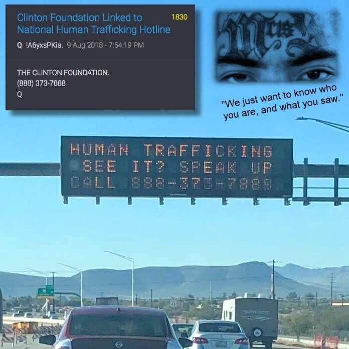 Why is this Human Trafficking sign, on a highway, directing people to call a #ClintonFoundation number??? #InquiringMinds #CheckItOut