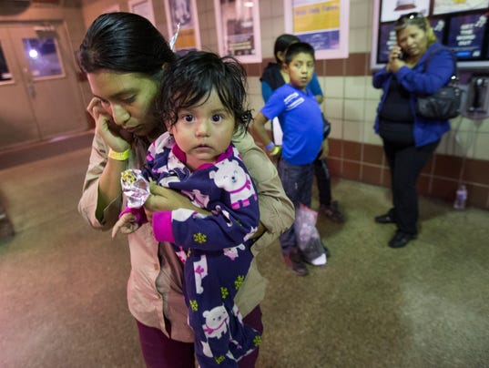 Migrants are released from ICE custody at a Greyhound Bus station in Phoenix May 28, 2014. The Border Patrol says about 400 migrants were flown from Texas to Arizona because of surge in migrants being apprehended in Texas. This group was from Texas and Georgia.(Photo: Michael Chow/The Republic)