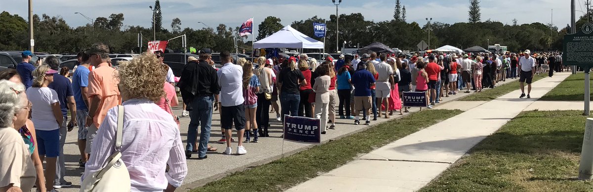 Everywhere we go- the patriotism, energy, spirit and love is all over the place. Sarasota overflow crowds were massive. #TrumpMovement
