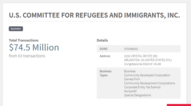 I’ve been noticing the absence of the US Committee for Refugees and Immigrants (USCRI), one of the top nine federal contractors***, in all the anti-Trump media hubbub and wondered if they were shrinking financially and therefore laying low to stay out of Trump’s line of sight.